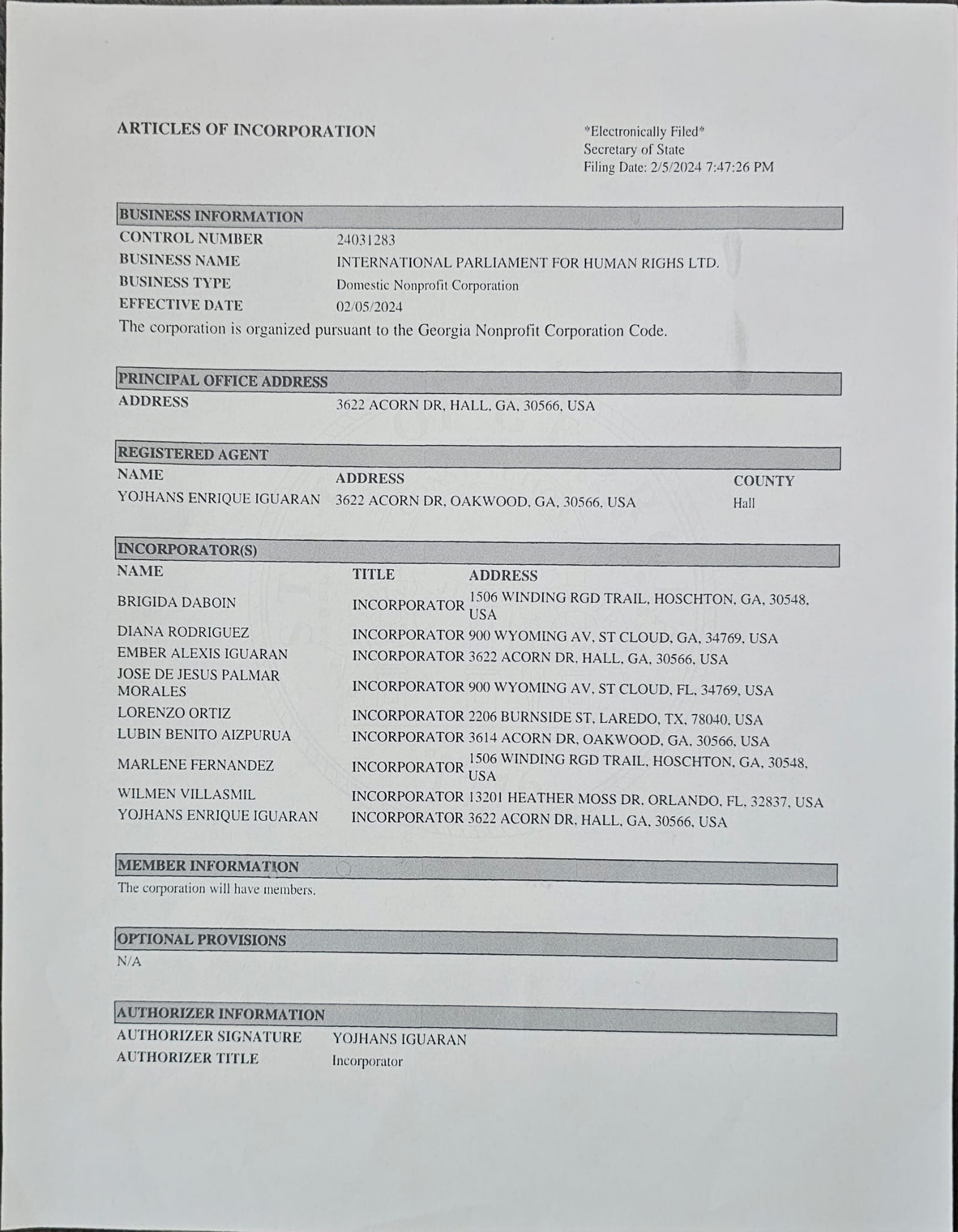 ARTICULOS DE INCORPORACION IPHRUSA